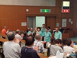 学科のとくちゃんが46期の方々に地域活動の報告を大教室で行いました。学科の有志11名が大教室にてこの発表を応援しました。