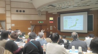 実践報告者西村千代美さん(43期健康づくり学科) 田上上学区でサロンいっぷくを月1回おしゃべりしようとレイカディア大学卒業後にみんなが楽しく集まれる場所づくりをされています。コーヒー1杯から昼ごはんを提供され、近隣以外の町外からの参加もあるそうです。サロンの参加者には、友達を誘って来てくださいと声掛けされています。食べておしゃべりだけでない、認知症カフェの委託されているそうです。今後は、買い物支援の応援も考えておられると伺いました。 実践報告者 木村 健治さん (44期園芸学科) 高島で中央まちカフェ「てきてく」をされています。※一滴のしづくから広がる歩いて行けるテクテク 高島市は高齢化率40%だが駅前の高齢化率は低い環境で活動されています。シニアの力で子どもたちに安心と希望を!と語たられたのが印象に残りました。 野鳥に親しむ会、民族衣装を楽しむ、オカリナ、台風の備えより(アイラップで湯せん)、ボッチャ、モルック、カローリング、囲碁ボール、クリスマス会、焼き鳥、もちつき、ドラム缶窯(制作)など聞いているだけで楽しそうなメニューを準備されるスタッフのエネルギーに感動しました。今後は、生活環境(ゴミ)活動にも取り組むことも考えておられました。 実践報告者 佐本 光彦さん (45期びわこ環境学科) 3名のレイカディア大学卒業生からボランティア実践報告を聞きました。 |