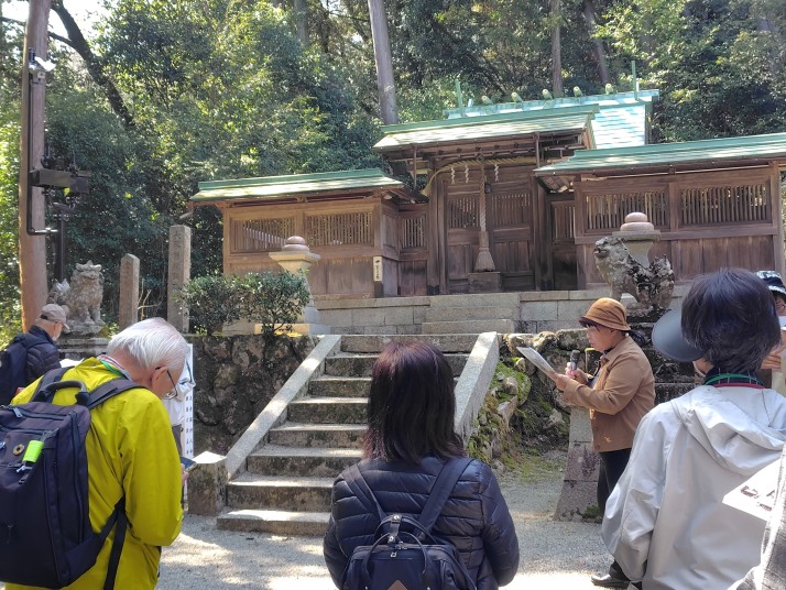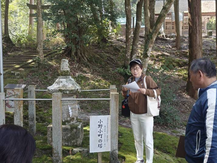 ・午前は、介護実習室にて、45期卒業生3名の方々から昨年度行われたガイドについて、ガイド地域決定、現地下見、役割分担、ガイド原稿作成、現地での模擬ガイド、現地ガイド本番等の概要、実践してみた感想等を話していただきました。その後、クラス員からの質問に45期卒業生3人ならびに講師の西嶌先生および山本先生にお答えいただきました。 ・午後は、現地に移動し、45期生3名の方々に小野神社・小野篁神社・小野道風神社においてガイドを実践していただき、そののノウハウを学びました。 |