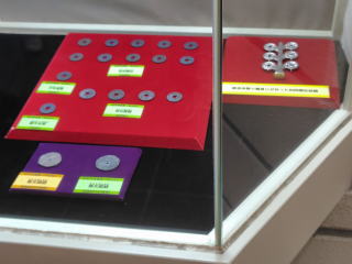 | ⑤無文銀銭・和同開珎(複製) | ⑥ 荷札木簡(塩津港遺跡(長浜市)) | ⑦ 相谷熊原土偶(複製) (相谷熊原遺跡(東近江市)) |