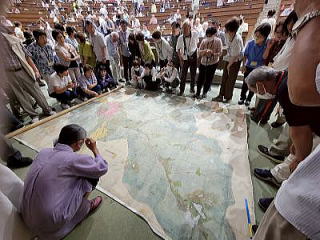 先生が所有する多くの世界、滋賀や地元の古地図が展示され、皆が興味津々でした。明治初期には滋賀も福井と合体し海に面していた時期があったという。