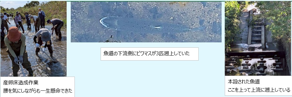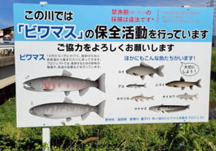 また、湧水が豊富な針江大川には、ナガエミクリ・梅花藻等の水草が見られ、ビワマスも確認できた。