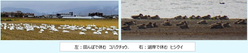 湖北の野鳥観察、内湖について(早崎内湖を例に) 湖北野鳥センター(長浜市):長浜市湖北町の琵琶湖岸が、1988年湖北水鳥公園とそて整備された際に設立 琵琶湖水鳥・湿地センター(環境省):湖北野鳥センターに併設(1997年設立) ・センター周辺は、1年を通して野鳥が観察される(53科257種:滋賀県全体の70%が観察された) 12月は、約60種(訪れた3日ごろは、20~30種ほど)みられる 実際に観察できたのは オオワシ(山本山のおばあちゃん):推定35歳、29年間毎冬山本山に飛来し、みんなのアイドル コハクチョウ(田んぼに200羽以上確認し、眼福だった)、 オオバン(滋賀県で一番多い) ミサゴ(空中で静止するホバリング飛行を行った後に急降下し、水面近くで脚を伸ばし両足で 10㎝程の小魚を捕まえるのが実際に目撃でき、感動した) ヒシクイ(とても美味しいとのこと→食べてみたい)、マガモ、カルガモ、ダイサギ、カワウ、トビ等 内湖(早崎内湖) 水深が1~2mと浅く、湖の湖岸に存在する小さな湖沼の総称、魚類の生息地で水鳥の繁殖地となっている 里湖(さとこ)ともいい、遊水地(治水)や利水、水産業、レクレーション場として利用された 多くが干拓されたが、早崎内湖は琵琶湖の生態系の回復や生物多様性に貢献するため一部内湖を再生させた ![]() ![]() ![]() |