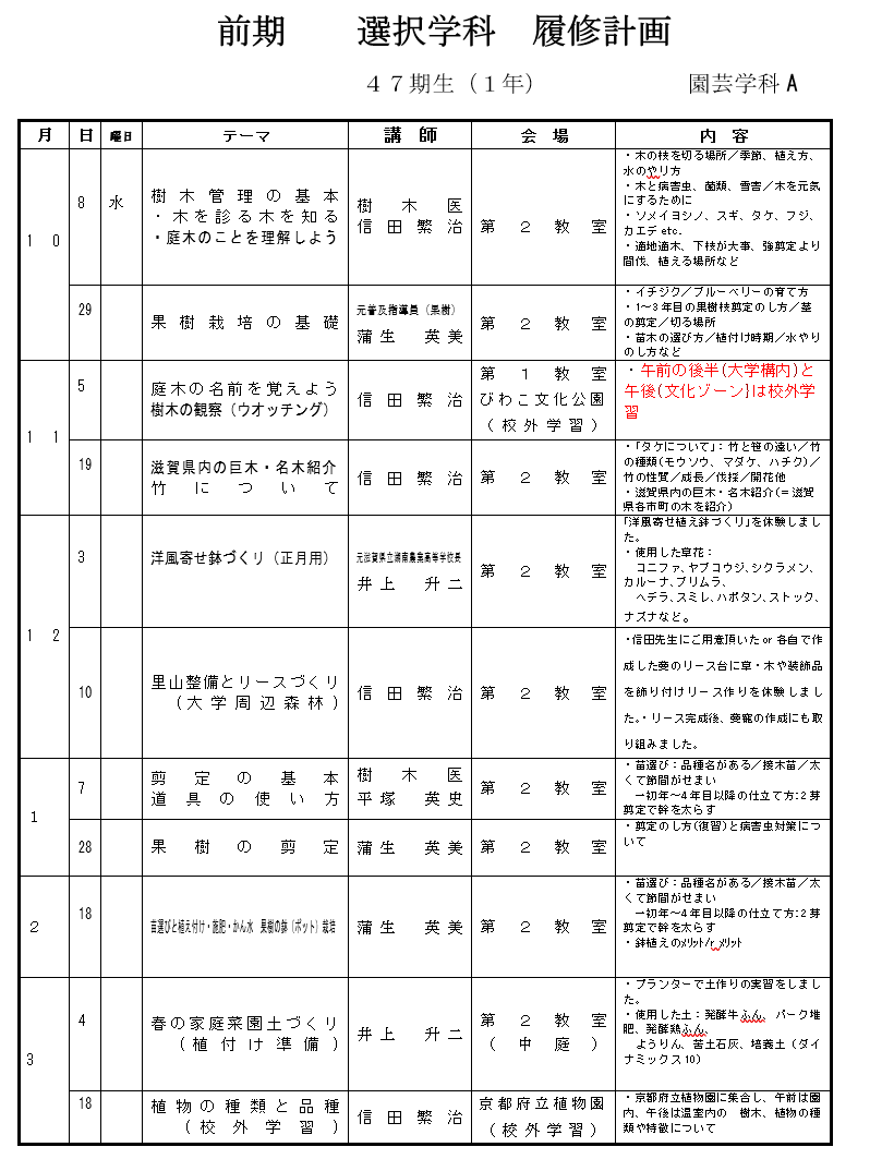 第45期 園芸学科A へようこそ