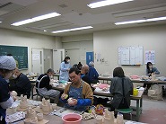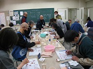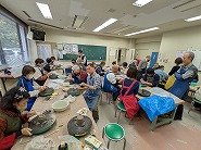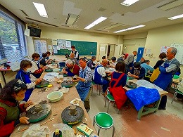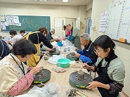 | 〇粘土を手にし、先生の土揉みを見た後、実技をしました(荒練り、菊練り)。 〇荒練りは、粘土を均一にすることが目的。菊練りは粘土の中の気泡を抜くことが目的で 練った後の形が菊の花のようになることからそう言いいます。 〇自分の陶芸作品に刻印するため石膏で落款を作りました。 石膏に自分の名や記号などを刻み、そこに印鑑の形にした粘土を押さえつけて作成。 これを乾燥させて、素焼きして完成。 |