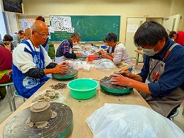 | 概 要 | 最初の作品に取り組む。座学に学んだことの応用も試みながら、いろんな陶芸に使用する道具と自らの指を使い、指導を受けながら制作。湯呑づくりには陶芸の基礎が詰まっているので、まず、一つを確実に作る。 | |||