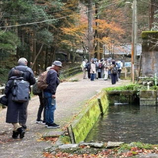 | 午後: ・醒井養鱒場内散策 養殖池(ニジマス、イワナ、チョウザメ)、電照施設等 ・醒井宿を地蔵川沿いに散策 梅花藻、居醒の清水、了徳寺のオハツキイチョウ |