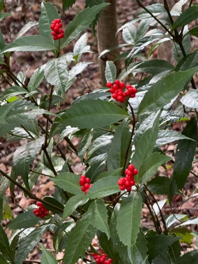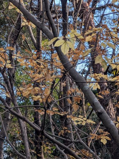 | 学習内容 | 午前:フィールドワーク(栗東自然観察の森の観察会) ・タカノツメ・センリョウ・オオモミジ・コシアブラ・ユリノキ・ハナノキ・マンリョウ・ヤマザクラ・ヒノキの実・竹林・シイの実・トチノキ・シキミ・ウラジロ飛行機・フユイチゴ・ミゾソバ・寝転んで木々を見、耳を澄ます・スノキ・メグスリノキ・マテバシイ・イロハモミジ・ホウノキ・クヌギ・ニシキギ・アラカシ・コナラ・コブシ |