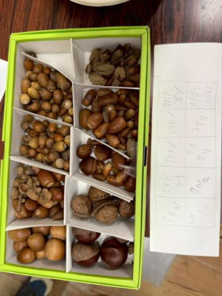 | まとめ | 1.栗東自然観察の森にある木々の種類の見分け方、木の形や花の色など日本固有種と外来種等の説明があった。 2.先生が持参された葉や実のサンプルを用いて丁寧な説明があり非常に楽しくわかりやすかった。 3.森林浴効果、砂糖甘問題、鹿の被害、修正材CLT,バイオプラスティックなどを興味深く学べた。 4.当日は冷え込み寒かった。 |