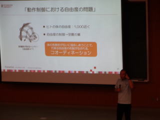 そして、この考え方は、動作制御における自由度の問題として、例えば、人がハンマーを持って釘を打つ時、腕や肘が固定されてない自由度の高い状況下で多少腕・肘などが動いてもキッチリと釘を打ち付けれるが、脳にいちいち判断を求めて動いているのかと言う問題になった。このような動作では、人の体の自由度は1000近くあり、自由度の制御は至難の業で、各器官が互いに協応しあうことで冗長な自由度を克服がなされるというコオーディネーションの考え方に至ったそうです。
