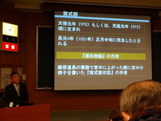 源氏物語が部分的に実話を取り込んでおり、光源氏の両親が一条天皇と中宮定子であるという新説、今から30年前からの説だそうですが、話をして頂きました。
