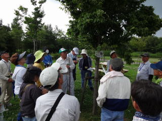 昼食を済ませた後は、外に出て実際の樹木の診断を行い、診断カルテの評価点を付けました。木の周りをまんべんなく見ないと診断はし難いが、先生の木の状況を聞くとみんなの評価点はまとまりました。やはり、木を診る目がないと難しいと思いました。