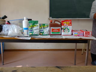 ・粉状とペレットがあるが、ペレットはホコリになり飛ばないので良い。肥料をまくときはマスク、手袋、眼鏡をする