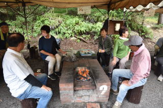 炭に火をつけるのや焼く係は主に男性陣。差し入れのサツマイモを焼いたり、イチジクの皮をむいたり、飲み物を配ったりは主に女性陣。