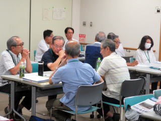 地域文化学科まちづくり講座を受講し、8月20日には終盤、6チーム(A~F)別に討論し、午後は各人各様の取り組み方について発表しました。