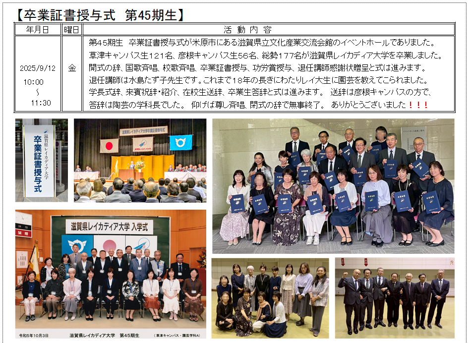 レイカディア大学 草津キャンパス                                学科Topページへ