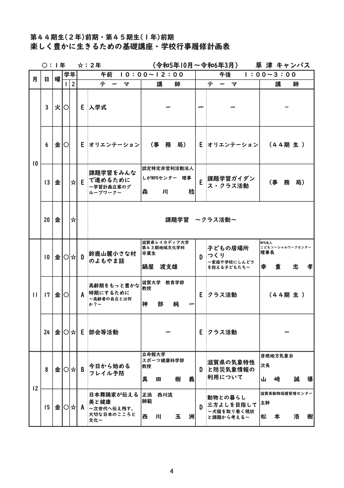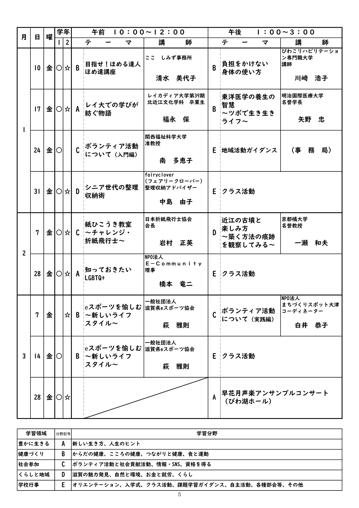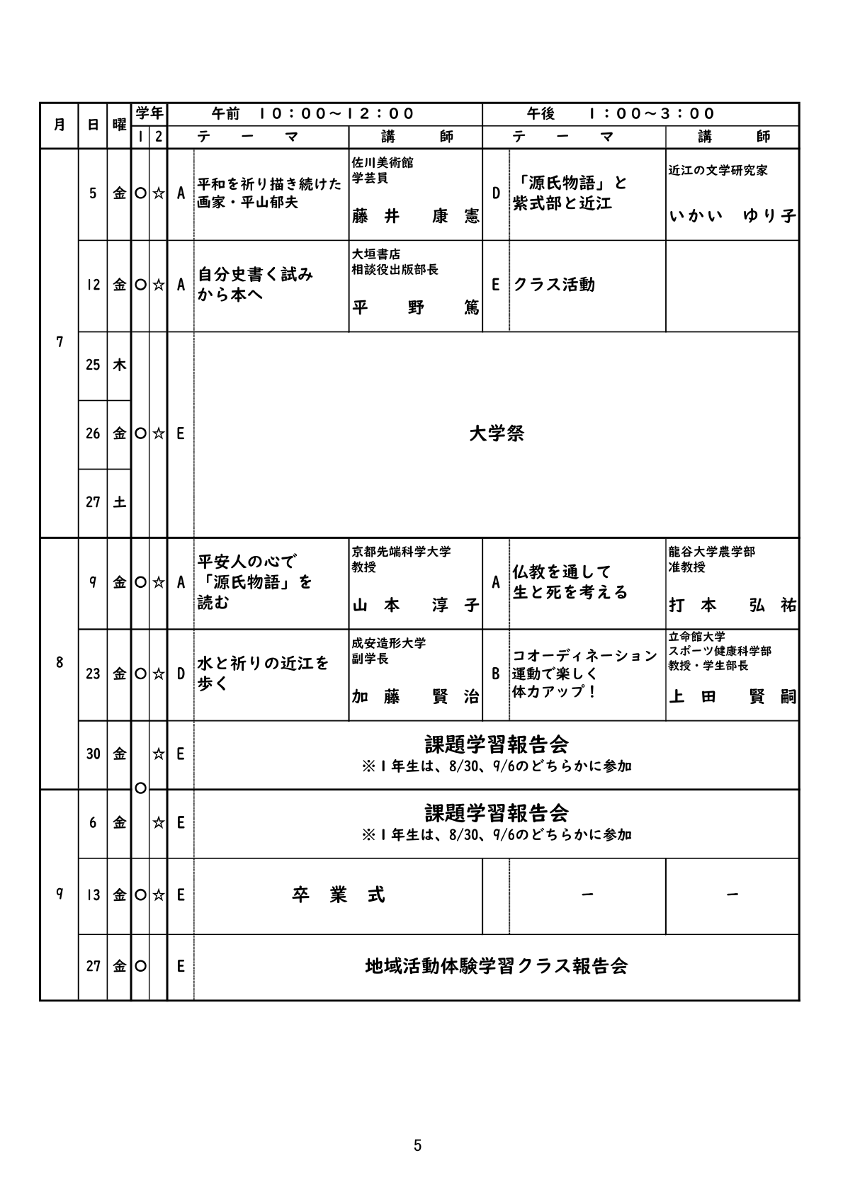 以下、第1学年の講座