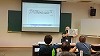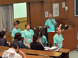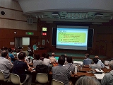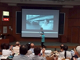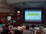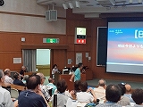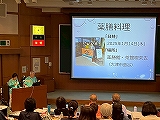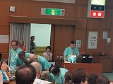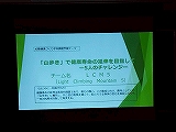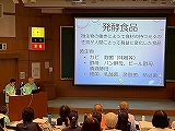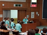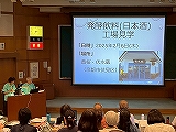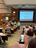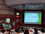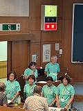 学科のとくちゃんが46期の方々に地域活動の報告を大教室で行いました。学科の有志11名が大教室にてこの発表を応援しました。
