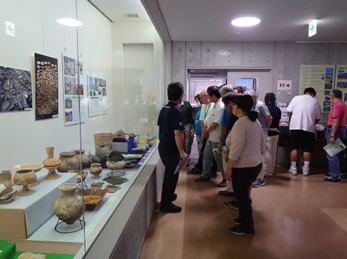 館内収蔵庫には発掘等された膨大な文化財や書物が保管されていました。