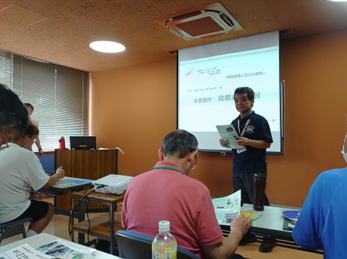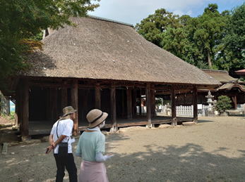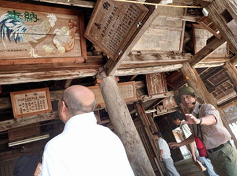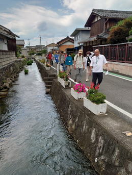伊庭の水郷集落内見学。石垣で作られた水路には鯉も泳いでいました。