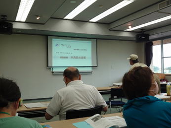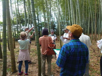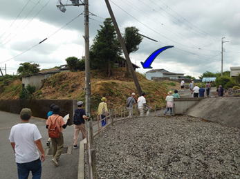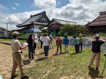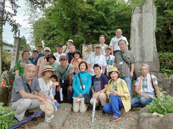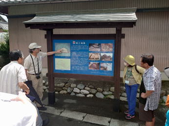 「鯰江城跡」見学に際し山本先生から案内板で説明を受けました。