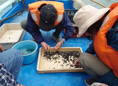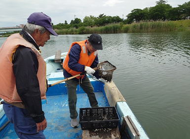 漁港から出港し「しじみ取り」を体験!