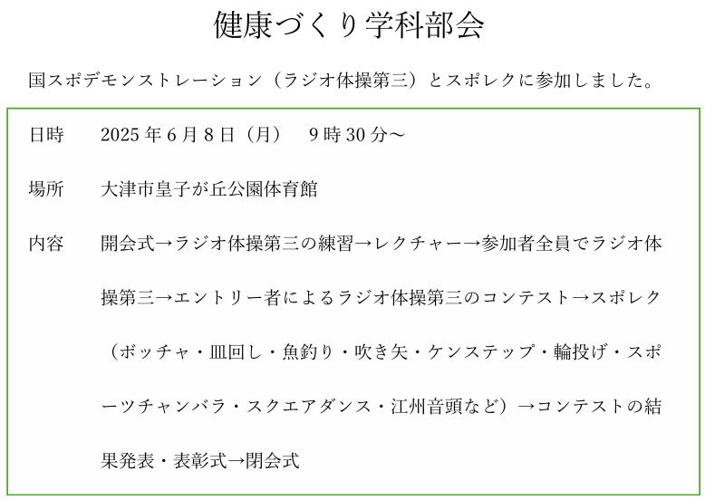 このページでは「健康づくり学科」の学科部会活動を紹介しています。