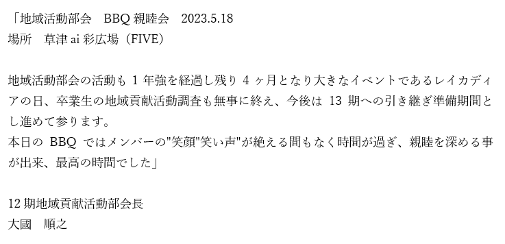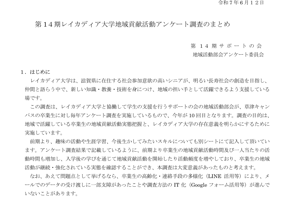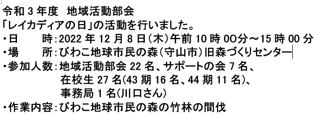 レイカディア大学草津キャンパス サポートの会 地 域 活 動 部 会 |