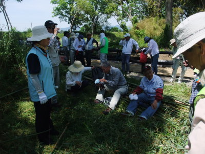 ![]() 6,細い竹を切る作業 |