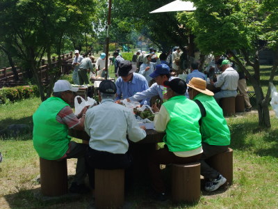 ![]() 雑木林隊(手のこでの伐採は重労働) |