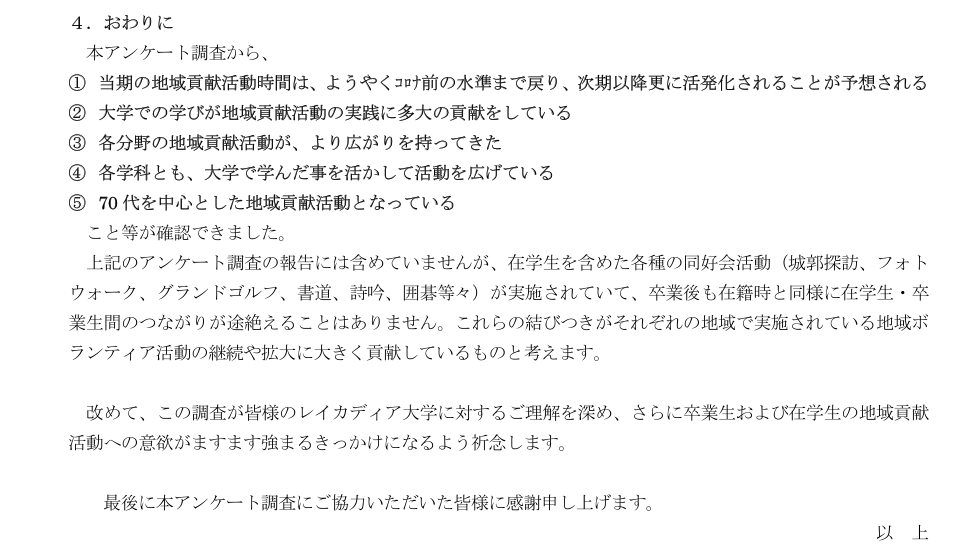 | 12 | 40、41、42期卒業生 | 2023.01.16 | 詳細 | アンケート委員会 | コロナ禍 |