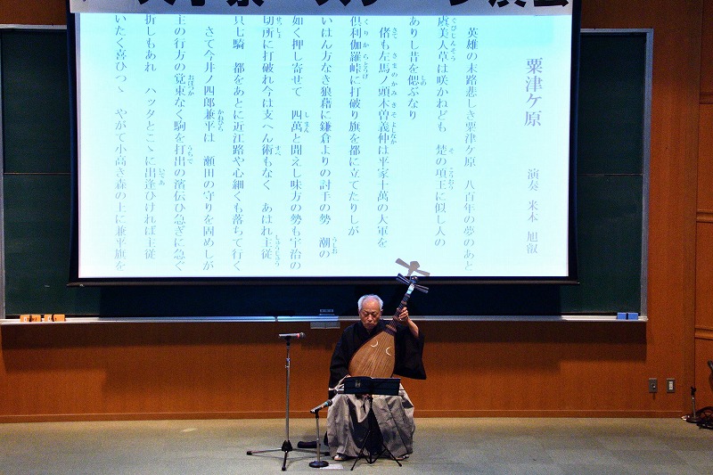 プログラム11 楽器演奏・弾き語り 筑前琵琶演奏「粟津ケ原」23期園芸学科 米本さん