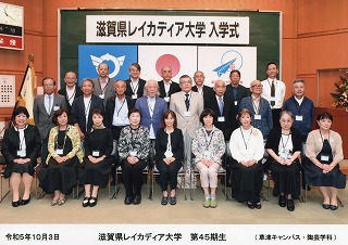 | とっちゃん | 草津市 | 56年住んでいた東京から一昨年草津市に転居してきました。レイカディア大学に応募したのは、友人もいない所へ来たので友達を作らなければと思い趣味も兼ねて陶芸学科に応募。友人が沢山出来る事の期待もあり、楽しい学生生活を過ごしたいと思います。 | 陶芸学科に入りましたので良い作品を作りたいと思います。大勢友人を作り、色んな事をやってみたいと思います。滋賀県の事も勉強したいです。 | 草津カンタービレという合唱団に入っています。メンバーは50名位の合唱団です。入団希望者いませんか? |