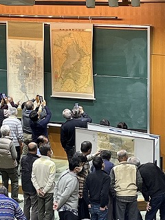 | 1月19日 金曜日 午後 D ・古地図で訪ねる近江 講師:松井 善和 一瞬ではあるが 滋賀県が 海を持った時が有る地図を見て 驚きました。 (滋賀県を名乗った 昔から海を持たない県と思っていたので ビックリしました) |