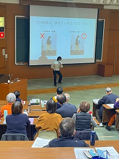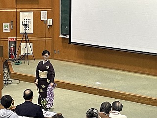 12月15日 金曜日 午前 A ・日本舞踊家が伝える美と健康 ~次世代へ伝え残す、大切な日本のこころと文化~ 講師:西川 玉洲 講師の指導を受けて 私達も座席にて踊りました。 数名の代表者が 講師の指導を受けステージにて踊りました。 |