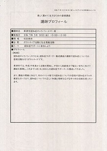 | 28 | 金 | A | クラス活動 | - - | D | 備えと構えで減災目指す | 太田 直子 | |