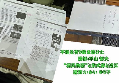 1月26日 金曜日 午後 D ・近江の歴史文化 ~紫式部を近江に招いた観音様~ 講師:大沼 芳幸 NHK大河ドラマにて紫式部の放映が始まると 今後ますます 観光客が滋賀県を訪れられるので 滋賀県人としての知識を得ましたので助かりました。 |