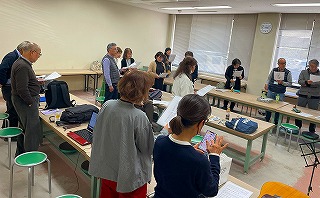 二曲を歌い終わり 展示ブースに移動して集合写真