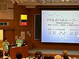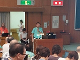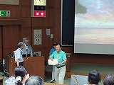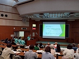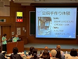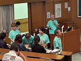 学科のとくちゃんが46期の方々に地域活動の報告を大教室で行いました。学科の有志11名が大教室にてこの発表を応援しました。