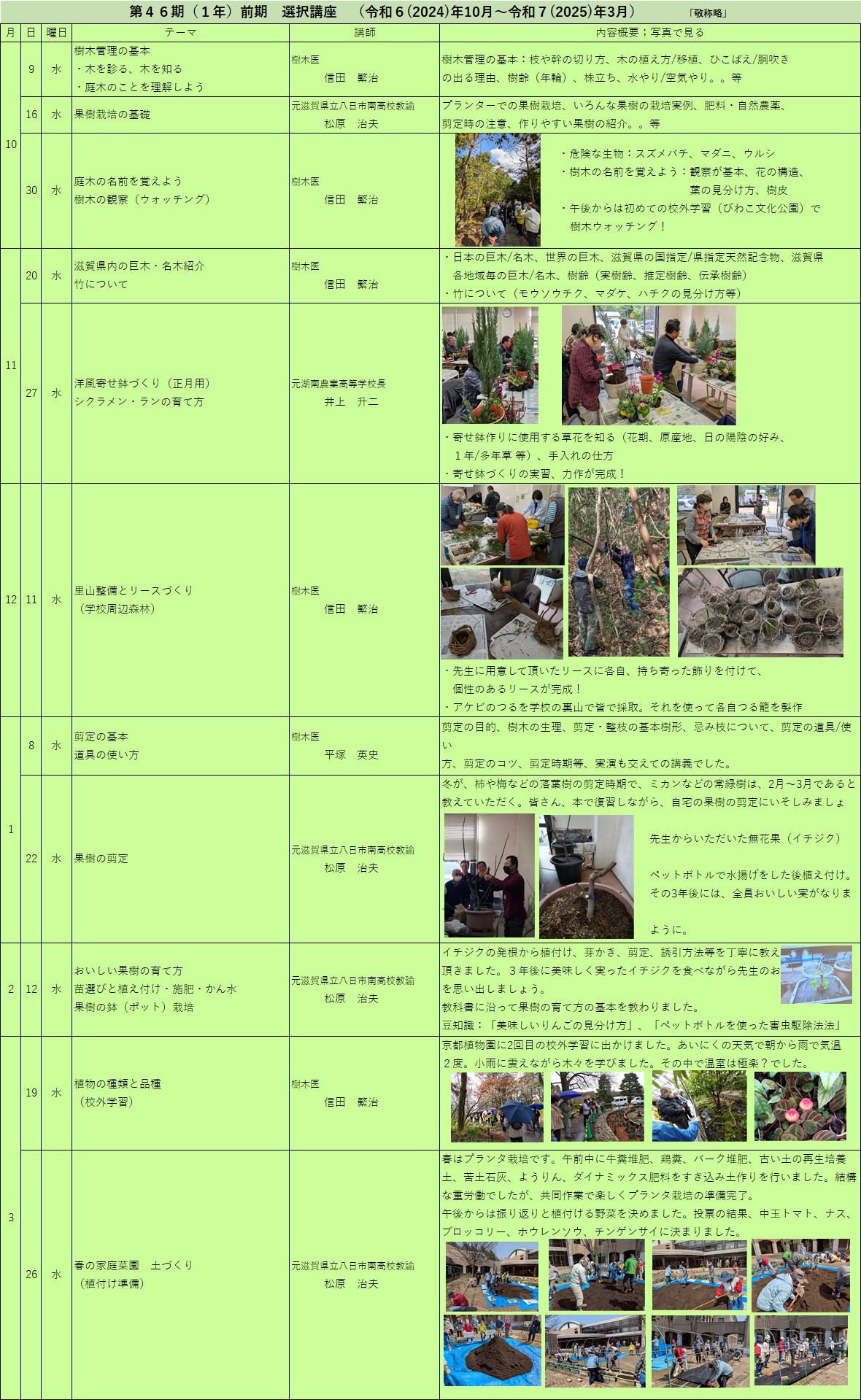 学習内容へ戻る選択講座 1年生園芸学科 A Topへ