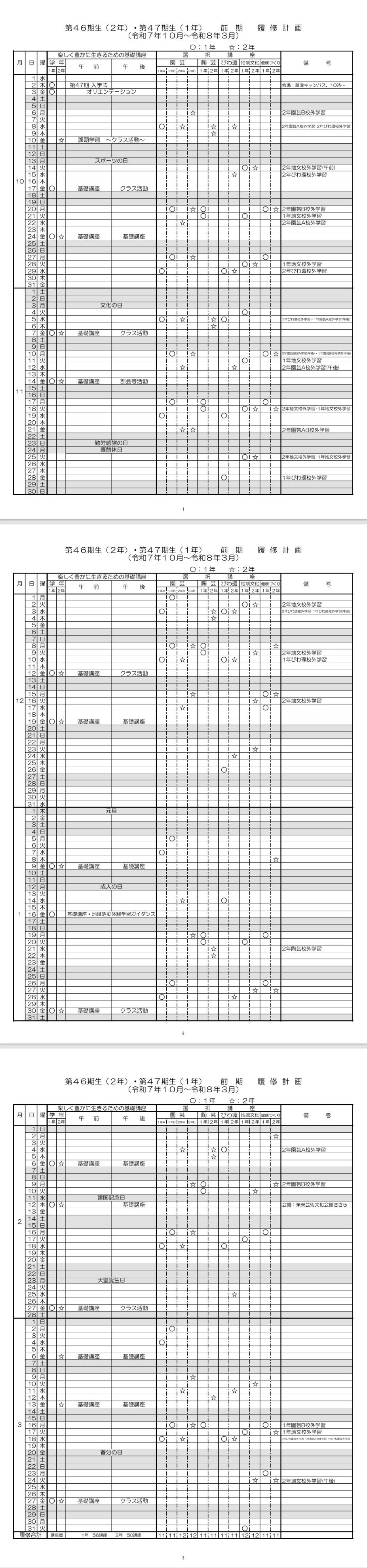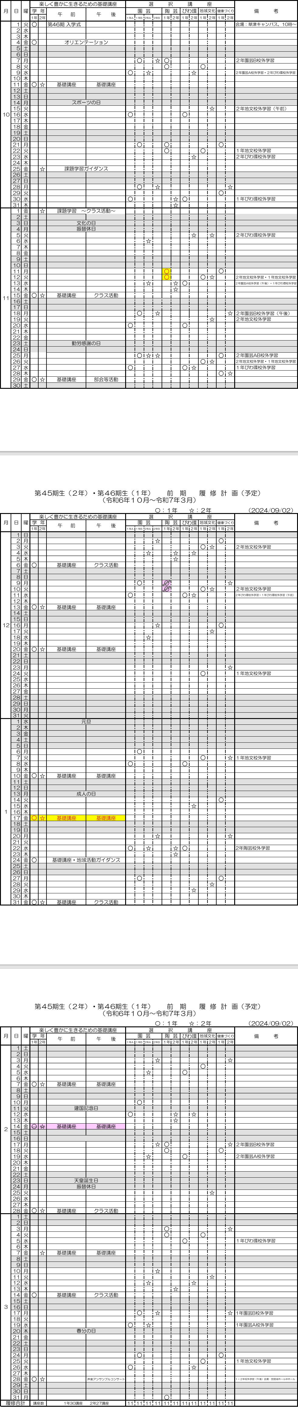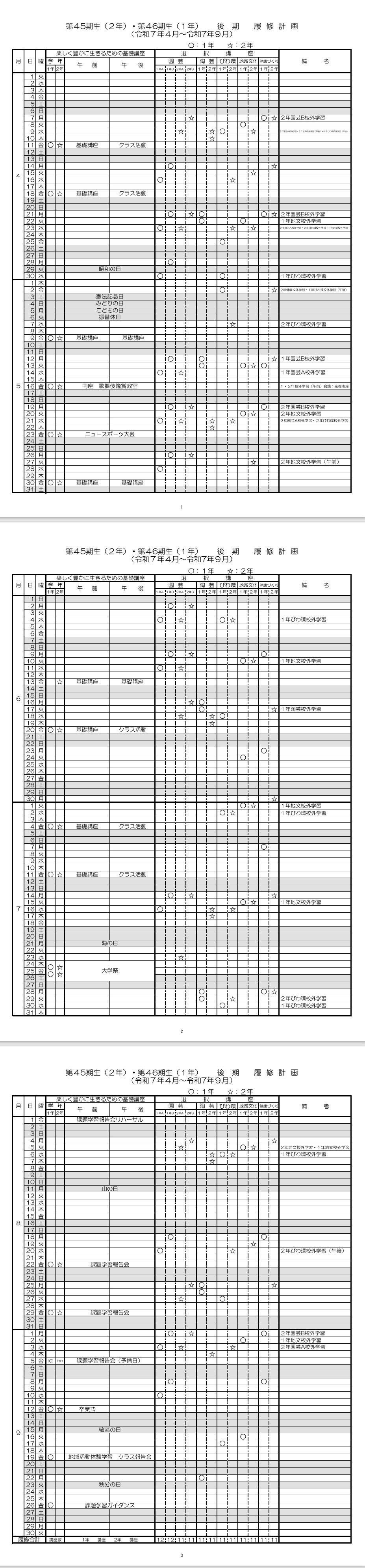 1年後期 履修計画