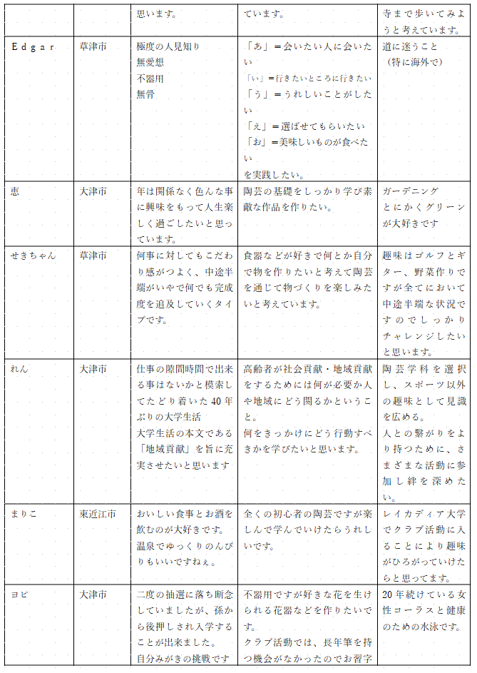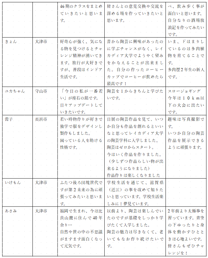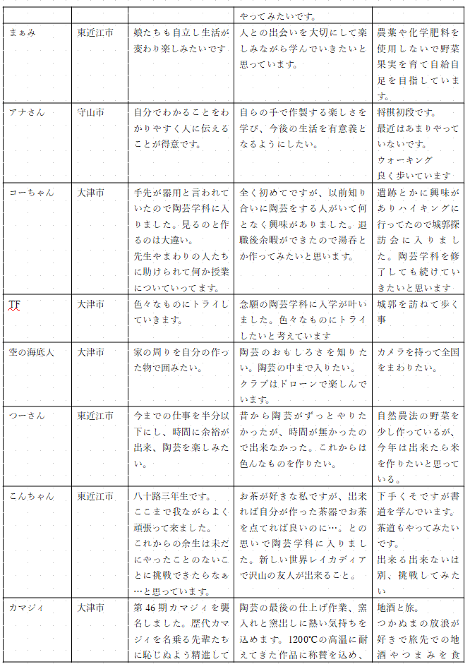 陶芸学科第46期入学生25名 2年間ともに学びましょう!皆さんどうぞよろしくお願いいたします。 滋賀県内から陶芸をしたいシニア仲間が集まりました2024,10,1