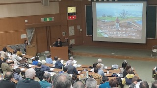 専門分野をレイカディア大学生に分かりやすく、パワーポイントで講演されました。カワウを研究され、カワウの水域から陸域の繁殖地の糞の影響などをお話いただいた。カワウと人とのかかわりに注目し、竹生島や愛知県の鵜の山におけるカワウと人の歴史的な関係は興味深く聞かせていただきました。 | ![]() |