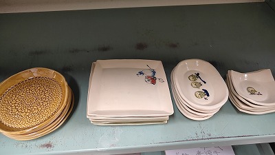 ![]() 10月から約2ヵ月、生徒がそれぞれ個性のある作品づくりをしてきました。5枚セットの器が電気窯から出たところ。 |