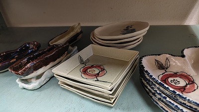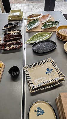 | 課題は同じでも、石膏型の器は個性があり隣の人が素晴らしく見えます。皆さん腕をあげてこられたと感じています。注文がありそうな器もあり、わずか1年にしてこんな食器ができることに感激です。これから陶芸を始めたいと思った方にも、レイカディア大学の陶芸学科をおススメできます。はじめて粘土に触れた生徒がほとんどで、講師の先生が親切に指導してくださり、私たちが困っている時にもさっと手を差し伸べてくださる陶芸学科の先輩サポーターさんが3人寄り添ってくだっているので安心です。 | ![]() |
