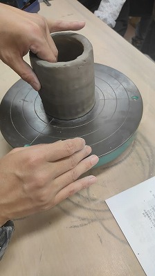 少し硬くしてから口部分を作るのにヒモづくりで2段積みます。 |