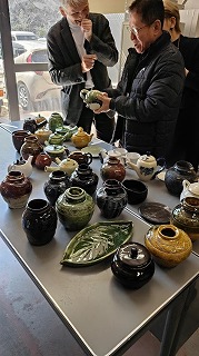 ![]() 3月12日は、12月に制作した「うずくまる」と2月に制作した「急須・土瓶」の講評の時間がありました。成型時よりは収縮するので一回り小さく感じますが、考えて迷いながら釉かけした作品に皆さん満足気です。一人ずつ順番に完成品を見せながら説明しました。後は自宅に持ち帰りお茶を淹れるのが楽しみ! |
