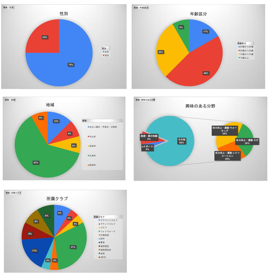 | H.S | 退職後、体力、健康に不安を感じ、健康増進と仲間づくりが出来ないかと思い入学しました。 |