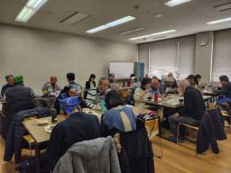 ・午前は、講師の清水満里子滋賀栄養士会常務理事のご指導で、郷土料理(しょいめし・えび豆・小鮎の佃煮・赤こんにゃくの煮物)を各班毎に調理しました。 ・各班で調理した郷土料理を昼食にいただいた後、午後からは清水先生から健康的な食生活などについてご講義いただくとともに、今後行う湖国の味カルタ作りの要領について説明していただきました。 |