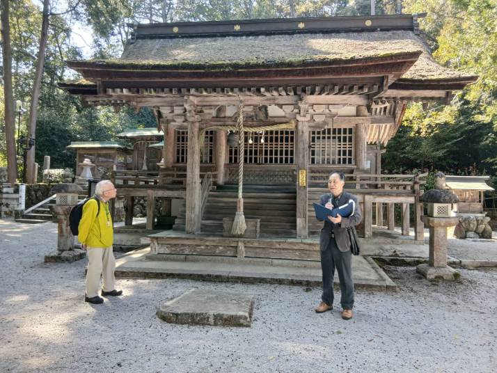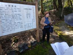 ・午前は、介護実習室にて、45期卒業生3名の方々から昨年度行われたガイドについて、ガイド地域決定、現地下見、役割分担、ガイド原稿作成、現地での模擬ガイド、現地ガイド本番等の概要、実践してみた感想等を話していただきました。その後、クラス員からの質問に45期卒業生3人ならびに講師の西嶌先生および山本先生にお答えいただきました。 ・午後は、現地に移動し、45期生3名の方々に小野神社・小野篁神社・小野道風神社においてガイドを実践していただき、そののノウハウを学びました。 |